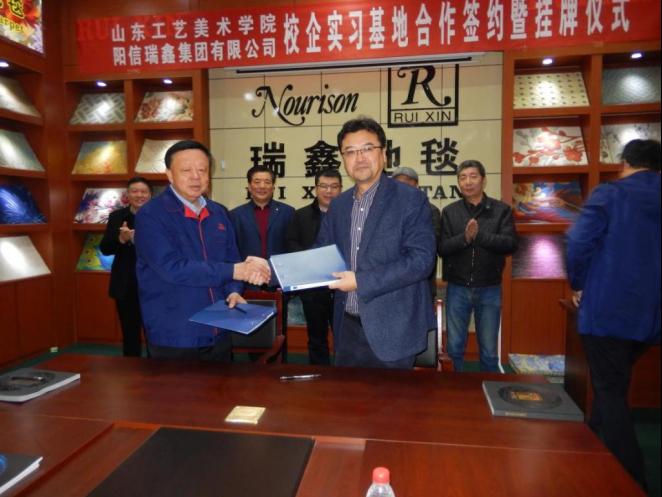 11月20日,山东省工艺美术学院与阳信瑞鑫集团有限公司校企实习基地合作协议暨挂牌仪式在瑞鑫集团中国地毯文化艺术博物馆举行。阳信县委组织部长田洪刚参加签约,阳信县委书记栾兴刚参会加座谈。11月21日,山东省工艺美术学院与莱州市利富工艺品有限公司校外实习基地合作协议暨挂牌仪式在山东莱艺工艺品进出口公司举行。莱州市委宣传部杨玄迪部长,姜明副部长参加签约并座谈。