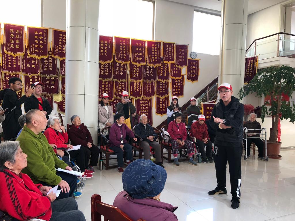 在负责人的安排下,志愿者们开始分工并积极投入到关爱老人的工作当中。他们陪着爷爷奶奶交谈问候,大厅的气氛很快活跃起来。稍事调整,志愿者们开始了才艺表演,如古筝演奏、手语表演等等,深受老人们的喜爱。其中,赵若言同学表演的京剧将演出氛围推向了高潮,在爷爷奶奶们的强烈要求下又唱了一出。除了志愿者们精彩的节目汇演,爷爷奶奶也为大家唱起几首红歌,歌声中满是他们对祖国、对党的热爱,值得我们去学习。表演结束后,志愿者们坐在爷爷奶奶面前,和他们拉手谈心,老人们的脸上都洋溢着笑容。时间过得很快,随着活动接近尾声,志愿者们与老人们留影告别后返校。