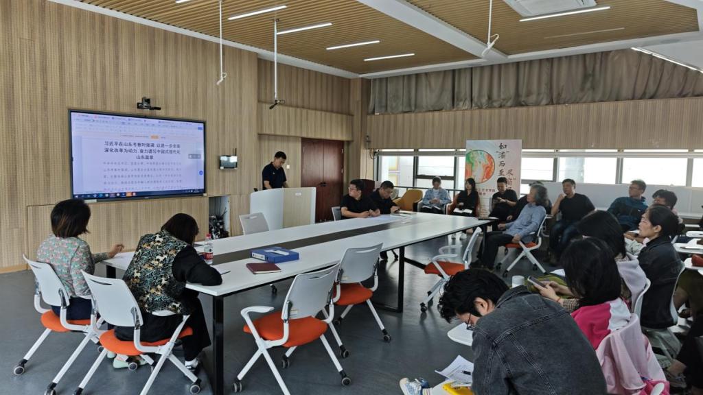 本次教职工大会首先进行教职工政治理论学习。王国燕领读了《习近平:加快建设教育强国》和《习近平在山东考察时强调 以进一步全面深化改革为动力 奋力谱写中国式现代化山东篇章》两篇重要文献。结合学院工作实际,围绕习近平总书记提出的弘扬教育家精神、加强新时代高素质专业化教师队伍建设、文化强国建设等内容,组织部分专业教师围绕如何将习近平总书记提出的重要指示精神贯彻到教学与创作中,如何在专业教学中融入中华优秀传统文化、扎实推进课程思政建设,如何推动艺术创作服务社会等内容,开展了交流讨论。