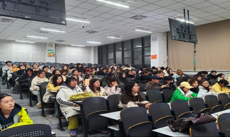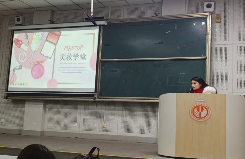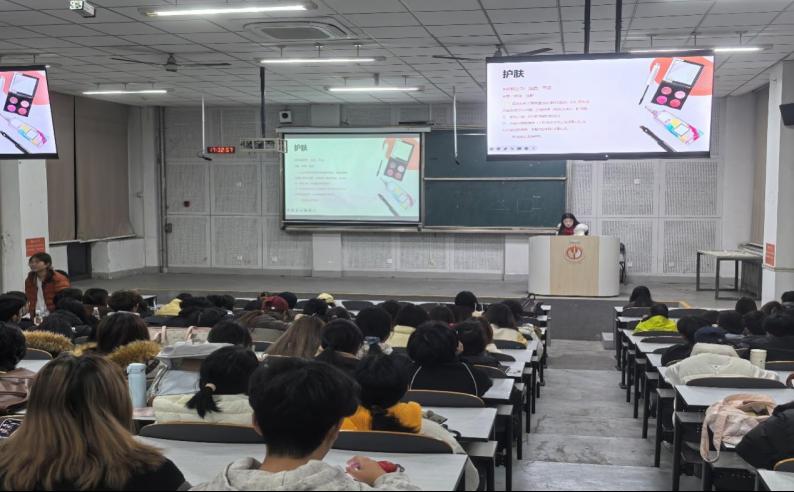 活动中,主讲人从美学原理与皮肤护理基础知识切入,阐述了“护肤为先,妆容为辅”的理念。她系统演示了日常通勤妆与求职面试妆的画法,对清透底妆、自然眉形、职场眼妆及腮红修容等技巧进行了详细讲解,并回答了同学们的现场提问。讲座获得一致好评。