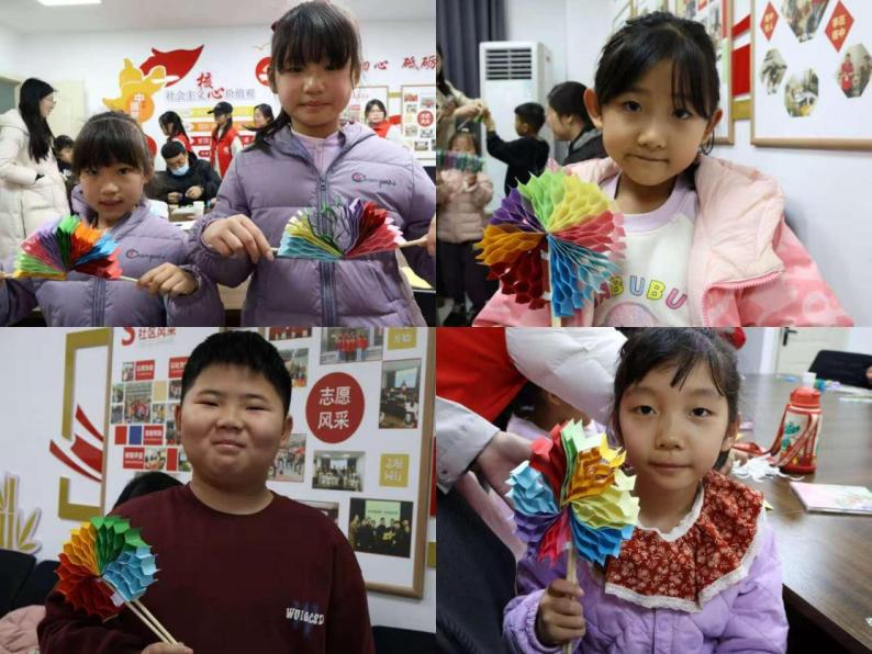 纸翻花作为一项承载着千年智慧的传统非遗技艺,凭借其“一翻一变,千变万化”的奇妙形态,历来深受人们喜爱。活动中,孩子们在志愿者的指导下,挑选彩纸、学习裁剪与制作技巧,一步步完成了属于自己的纸翻花作品。志愿者们耐心协助,鼓励孩子们自由发挥创意,用彩笔和贴纸对作品进行个性装饰。