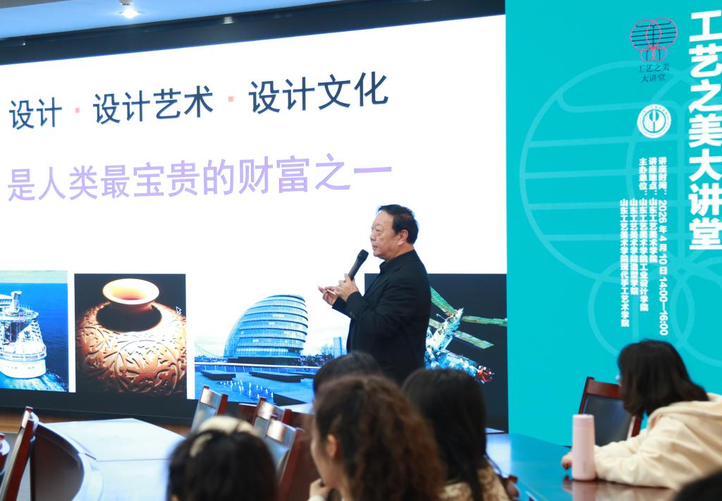 张夫也教授作题为《刷新未来:当代设计的发展理念与趋势》的学术报告。他从设计文明与时代使命出发,系统阐述当代设计面临的五大根本性转变:从机能走向智能、从生态设计走向设计生态、从创新走向适理、从以人类为本走向以生灵为本、从误读传统走向借古开今。张教授深刻剖析数智文明背景下设计伦理、设计责任与设计生态的核心要义,强调设计要坚守人文精神、服务社会民生、实现普惠共享,呼吁广大师生做工具的主人而非奴隶,在传承经典中开拓创新。他高度评价我校在全国工艺美术教育领域的独特地位与突出贡献,表示将持续支持学校学科建设与人才培养工作。